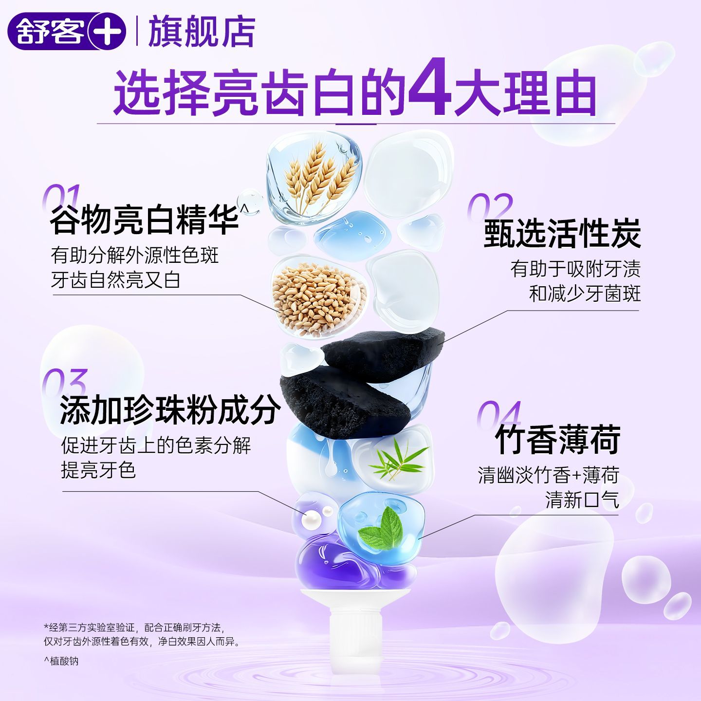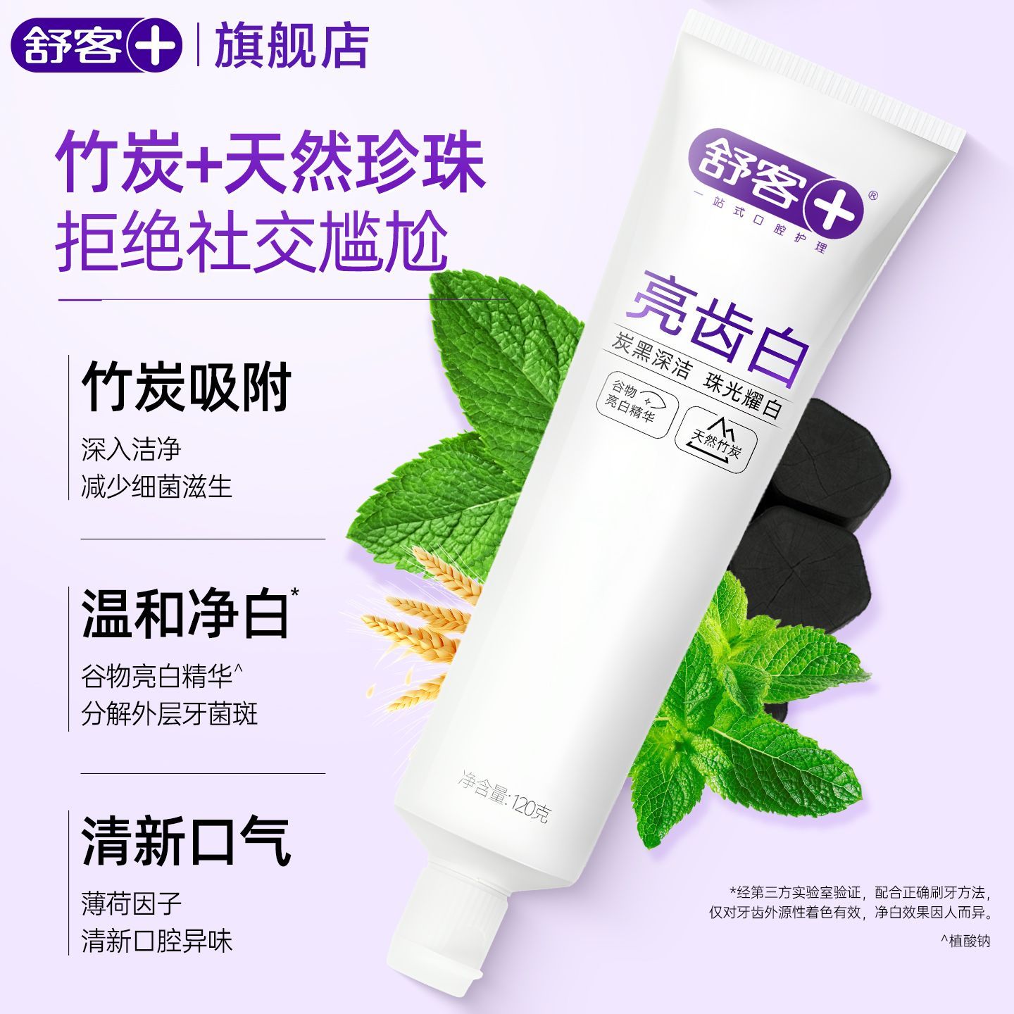 舒客亮齿白牙膏炭黑深洁清新口气口臭亮白去渍家庭装实惠异味留香