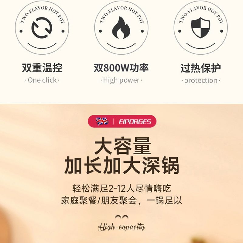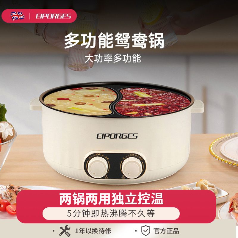 家用大容量2024电火锅鸳鸯锅2000W多功能双控一体电煮宿舍适用