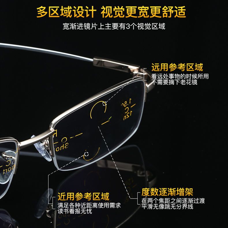 老花镜男女远近两用智能变焦多功能老花眼镜防蓝光内渐进多焦点