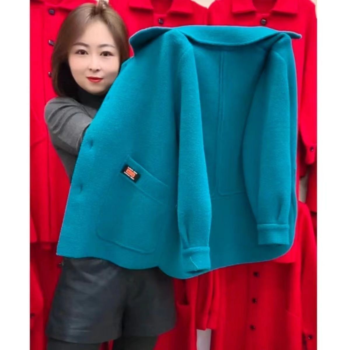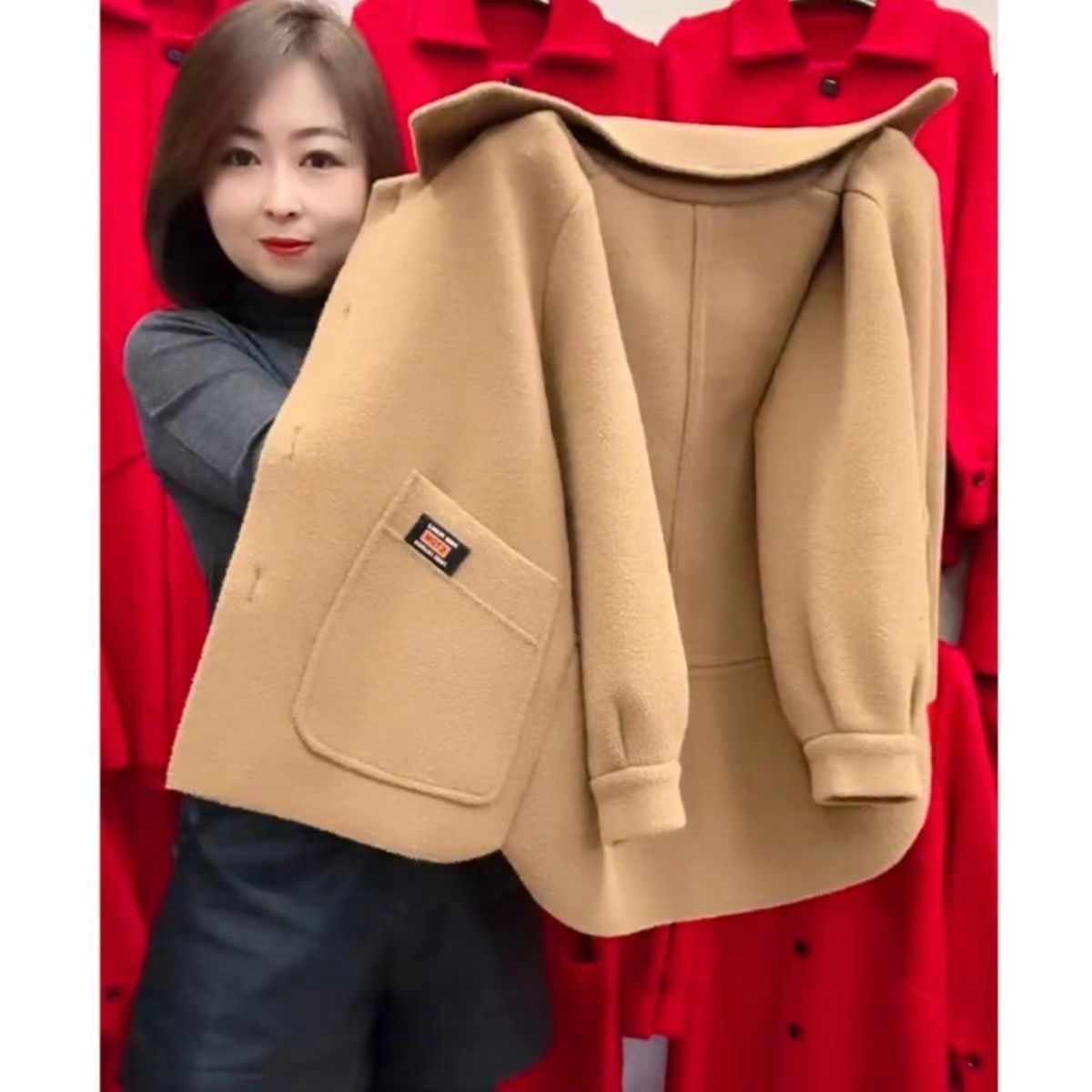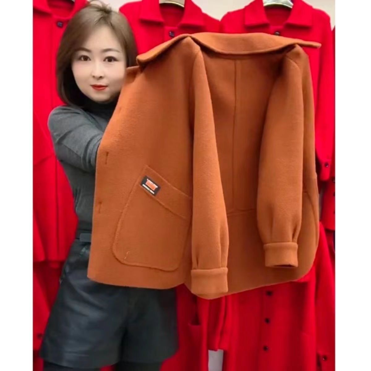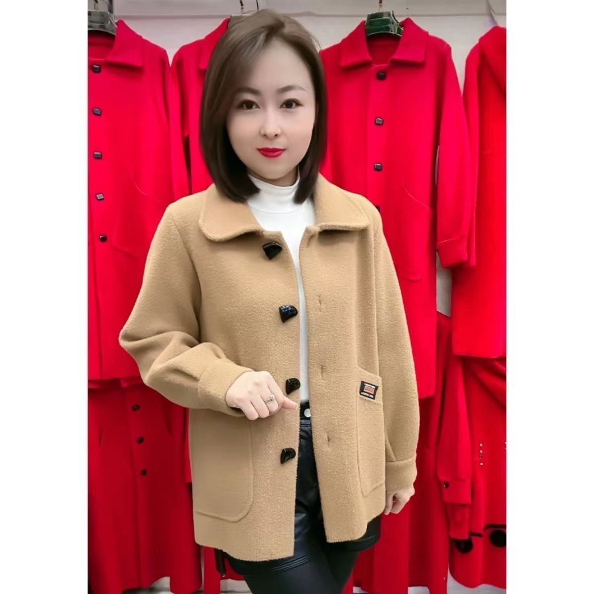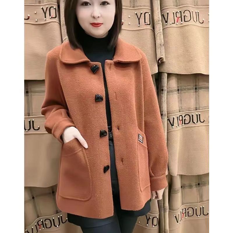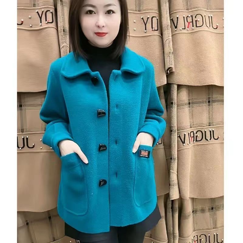 秋冬款妈妈装仿双面呢短款外套女中老年女装洋气显瘦毛呢外套上衣