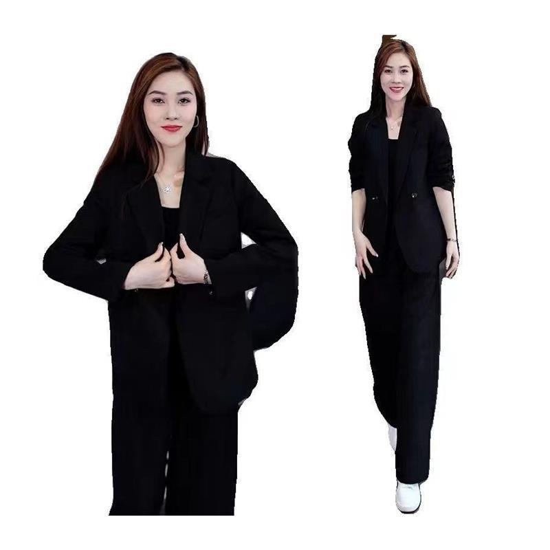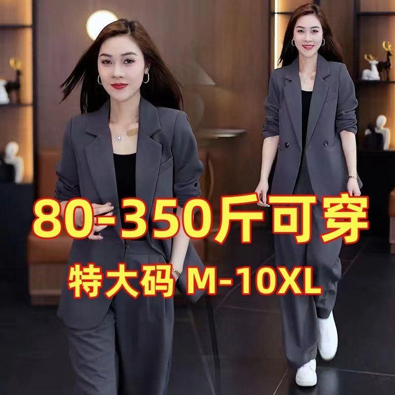 加大码350斤胖mm春季西服套装女新款职业西装外套阔腿裤两件套ins