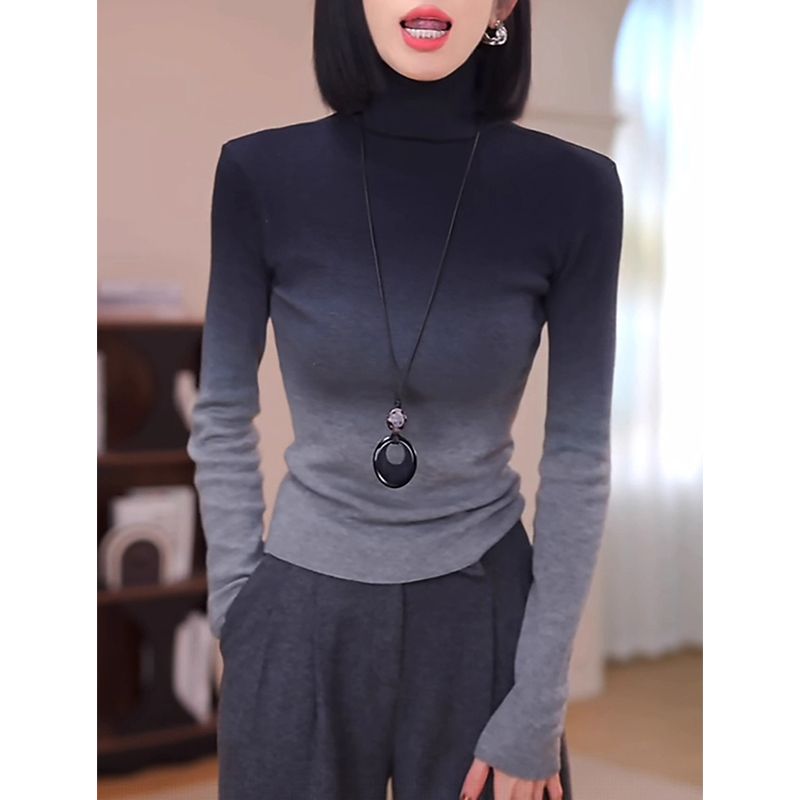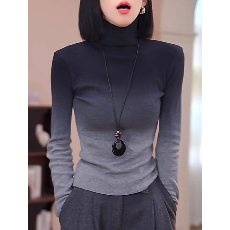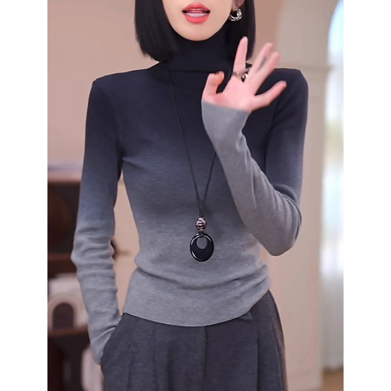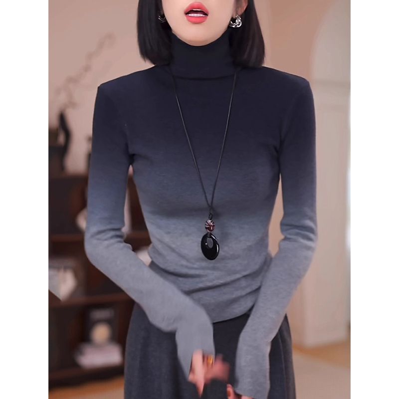 秋冬新款复古渐变色高领打底衫女设计感修身显瘦百搭软糯德绒上衣