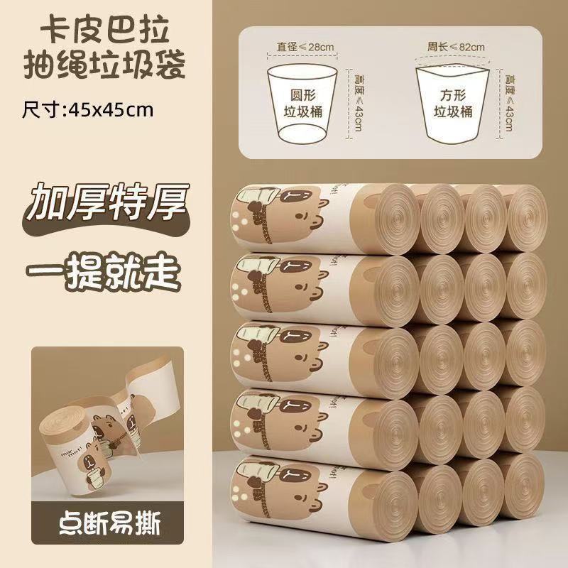 卡皮巴拉垃圾袋高颜印花家用厨用抽绳加厚款大号加厚垃圾袋