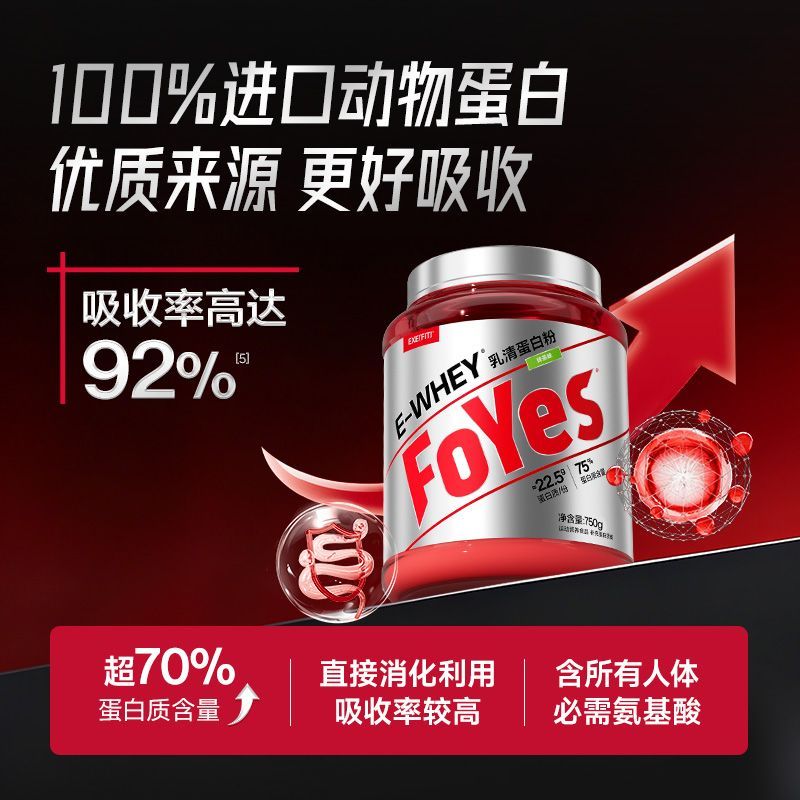 FoYes速生乳清蛋白粉1.6磅低脂多维增肌增重健身塑形运动分离营养