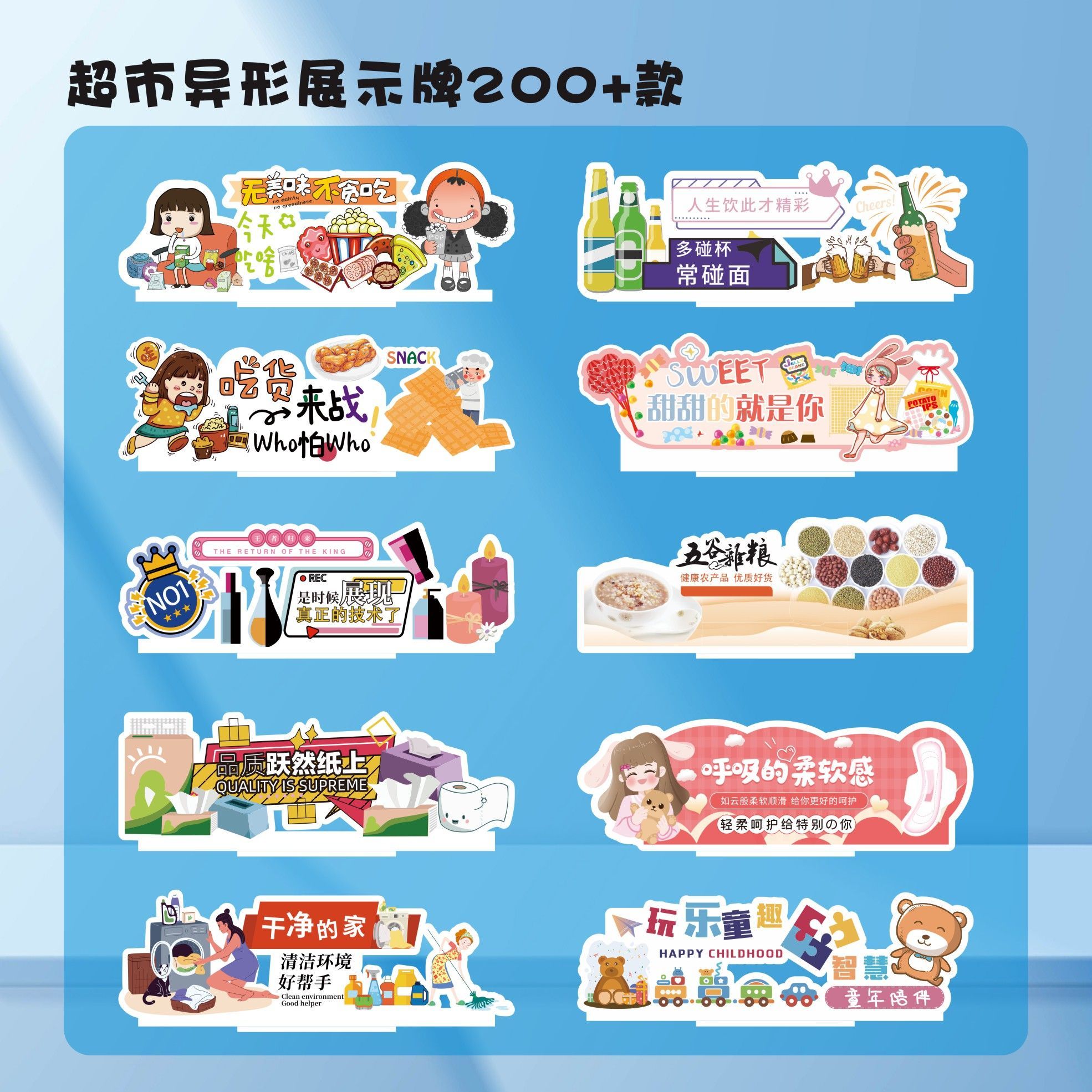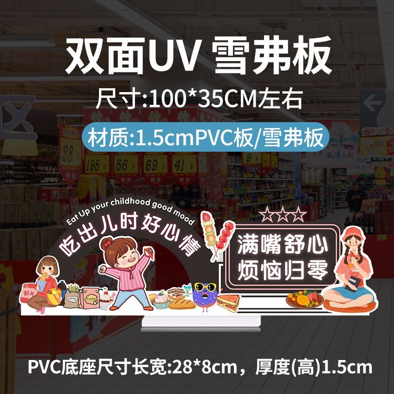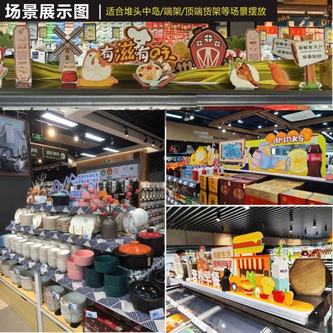 超市美陈顶层货架雪弗板立牌店教展示商超陈列道具高级氛围装饰品
