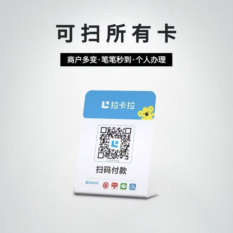 拉卡拉扫码收款移动升级收款牌子扫码支付收款码手持收银吊牌挂牌
