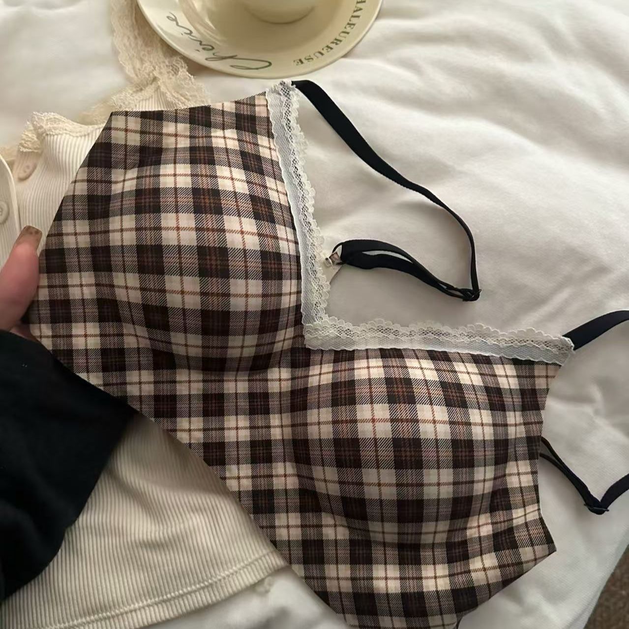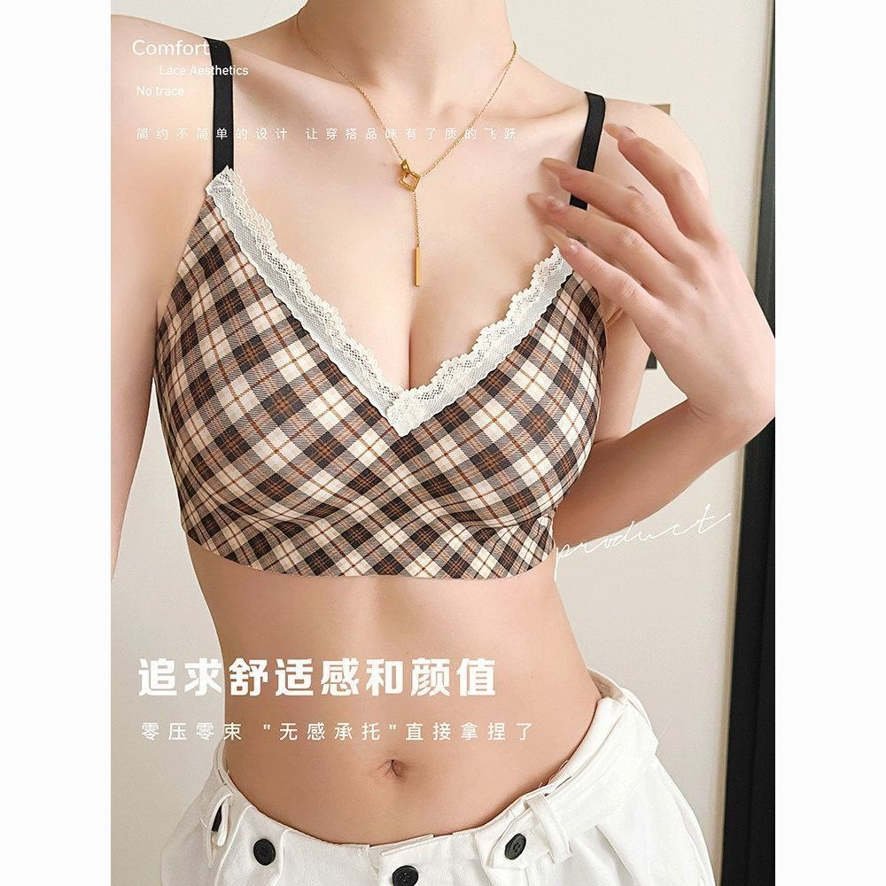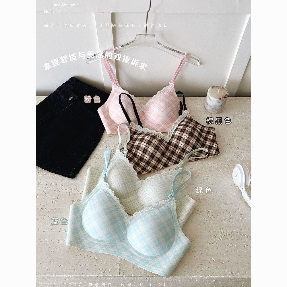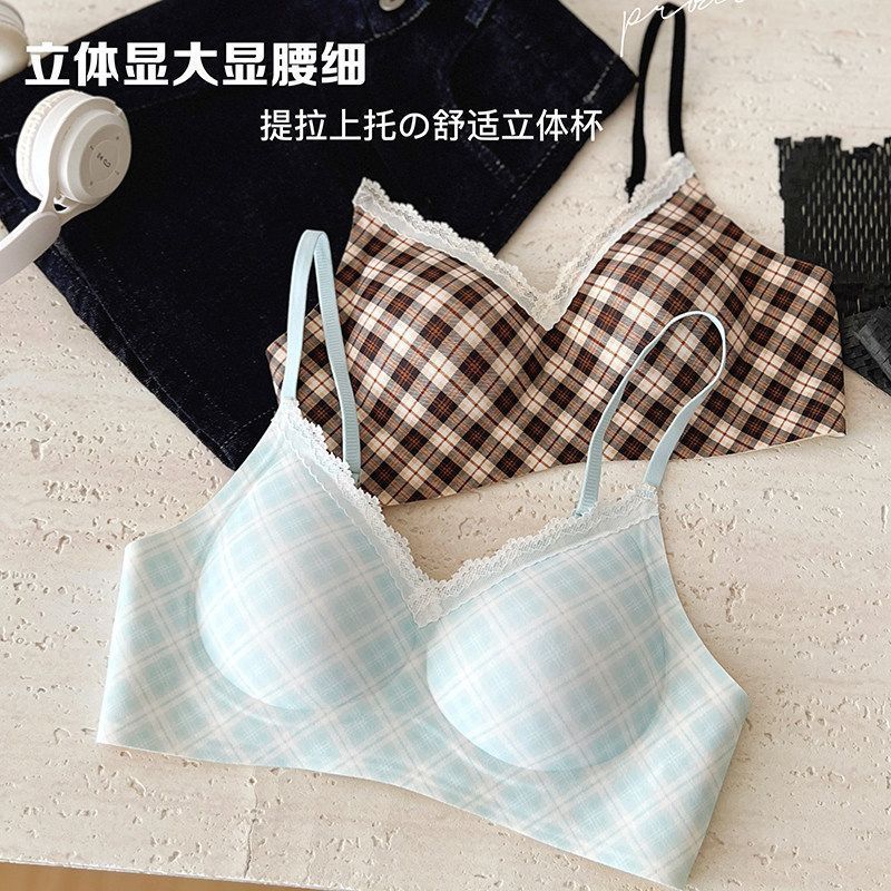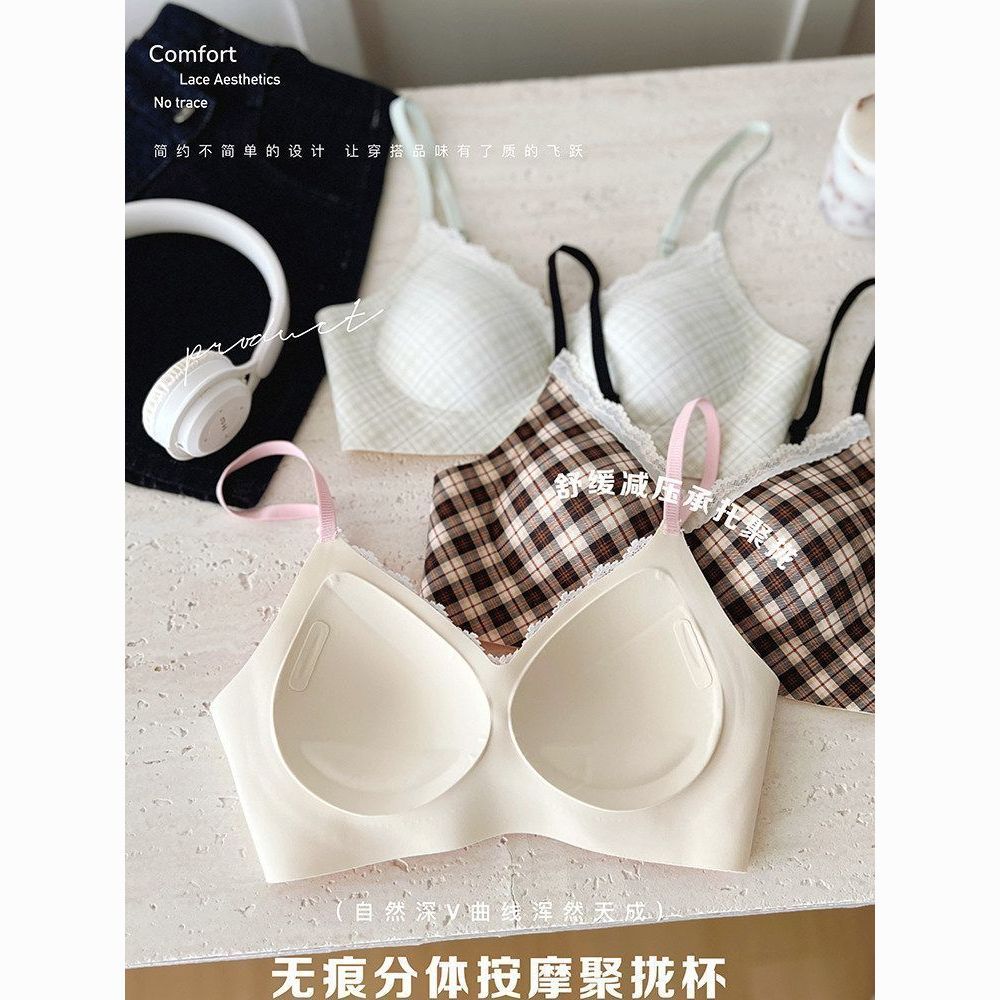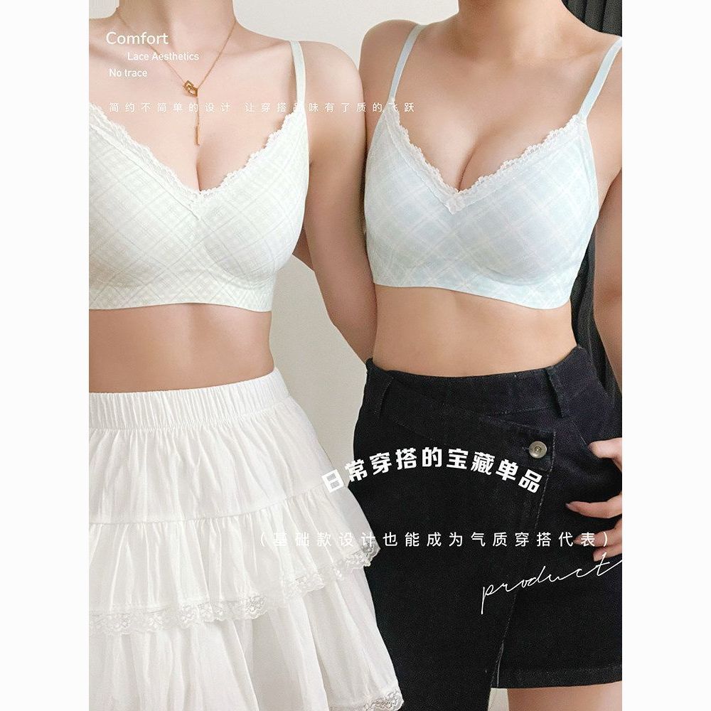 云想衣蕾丝内衣少女小胸聚拢薄款无钢圈防下垂收副乳性感文胸套装