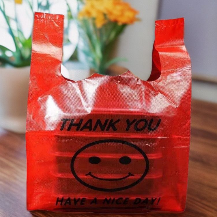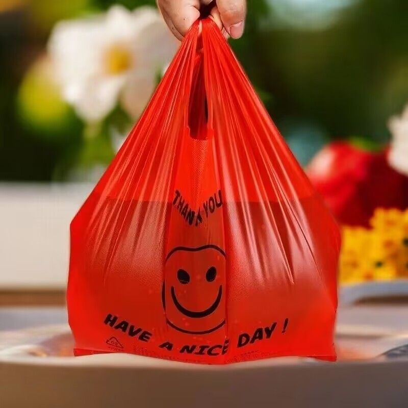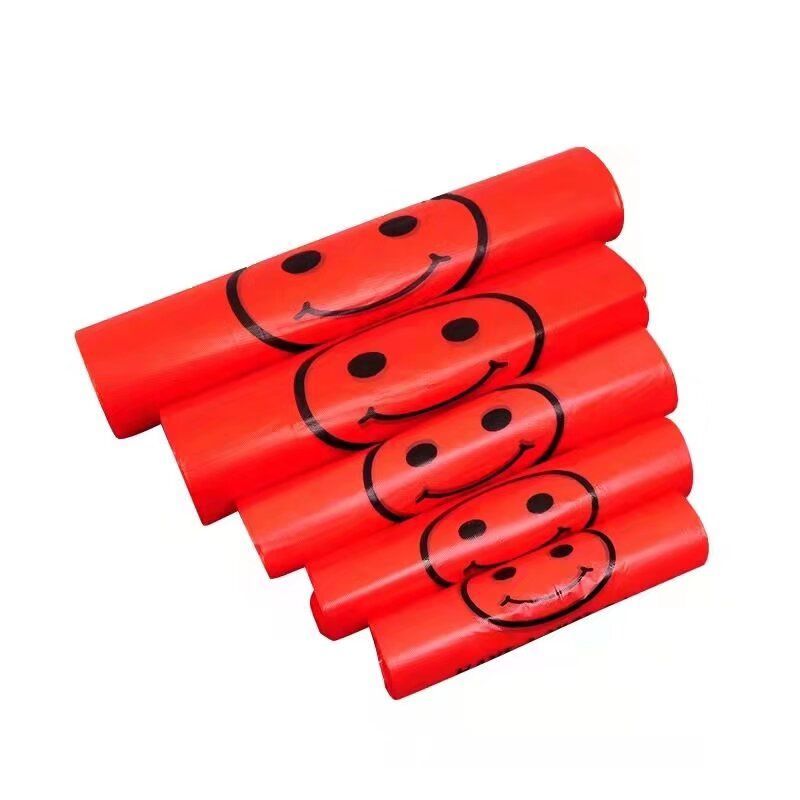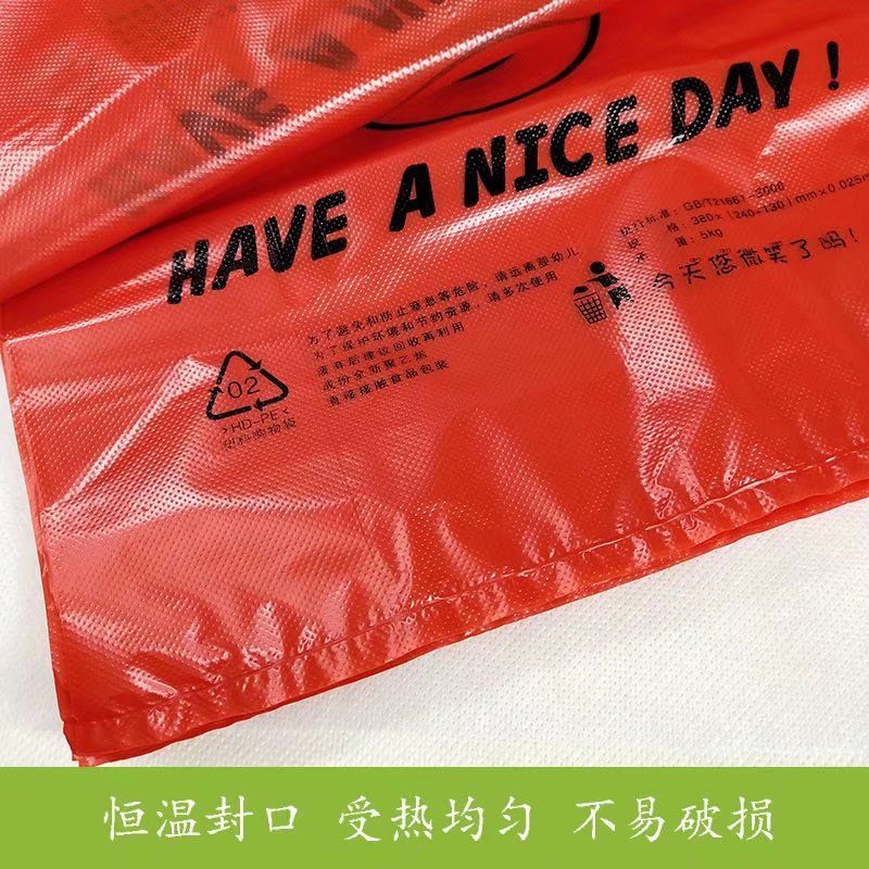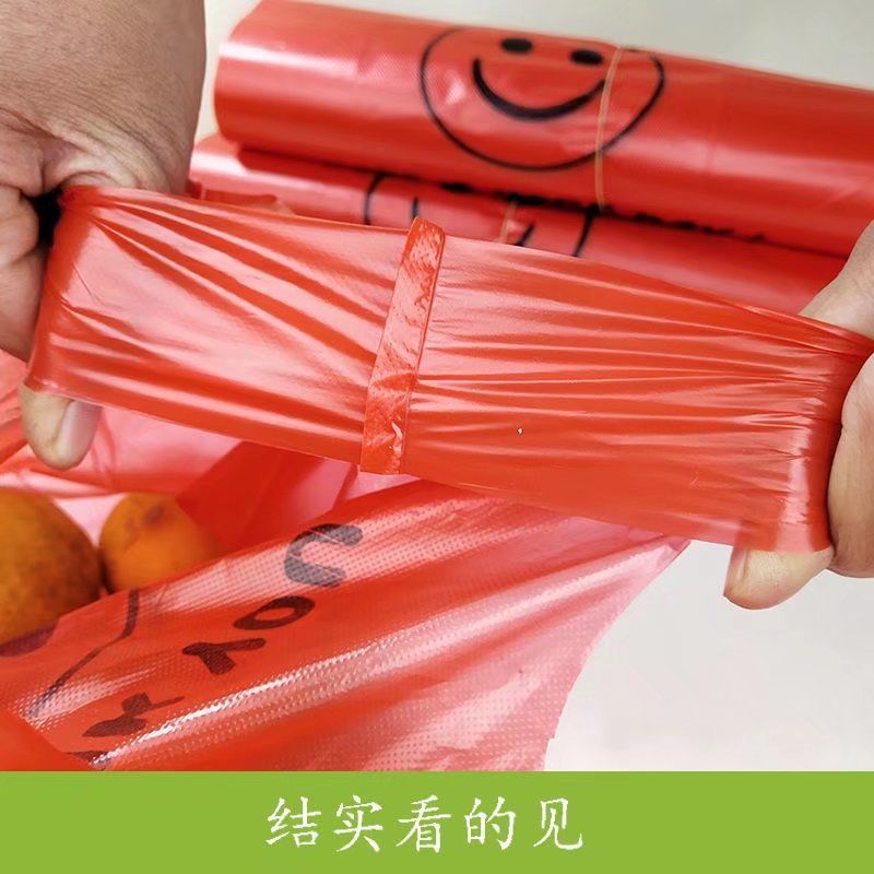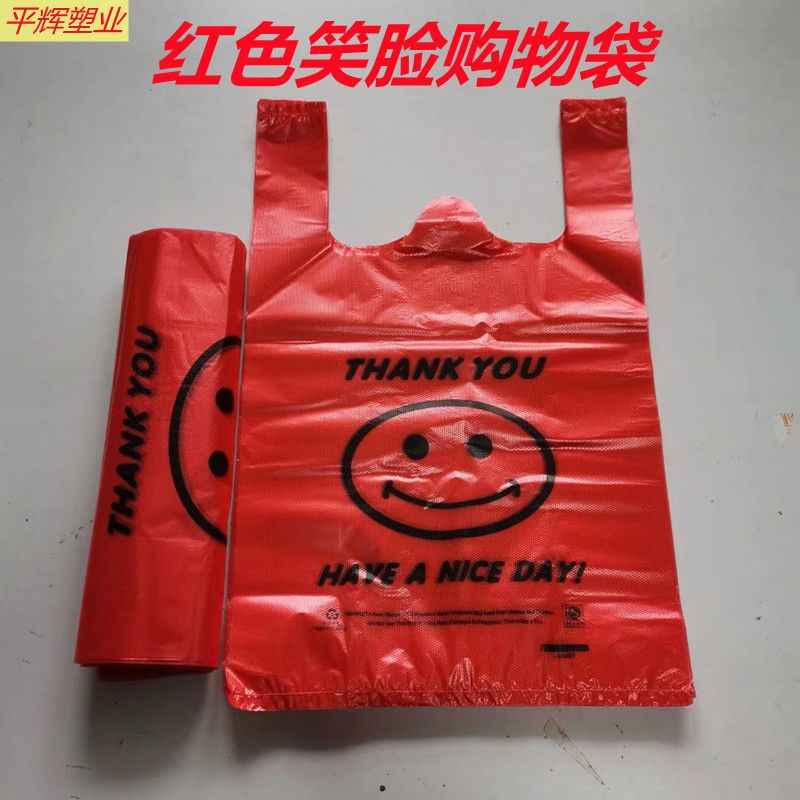 红色笑脸袋手提式一次性购物袋环保家庭收纳袋市场饭店外卖方便袋