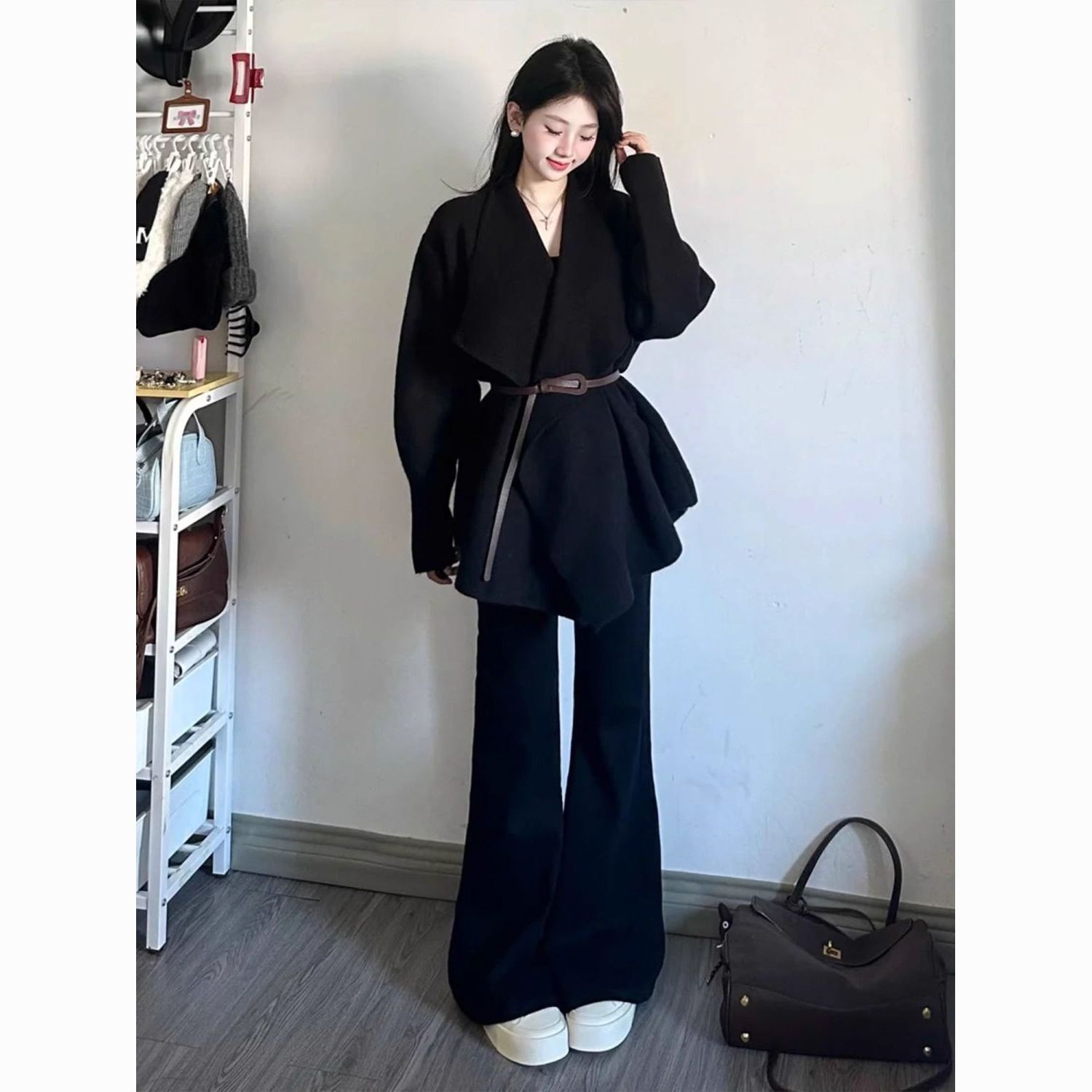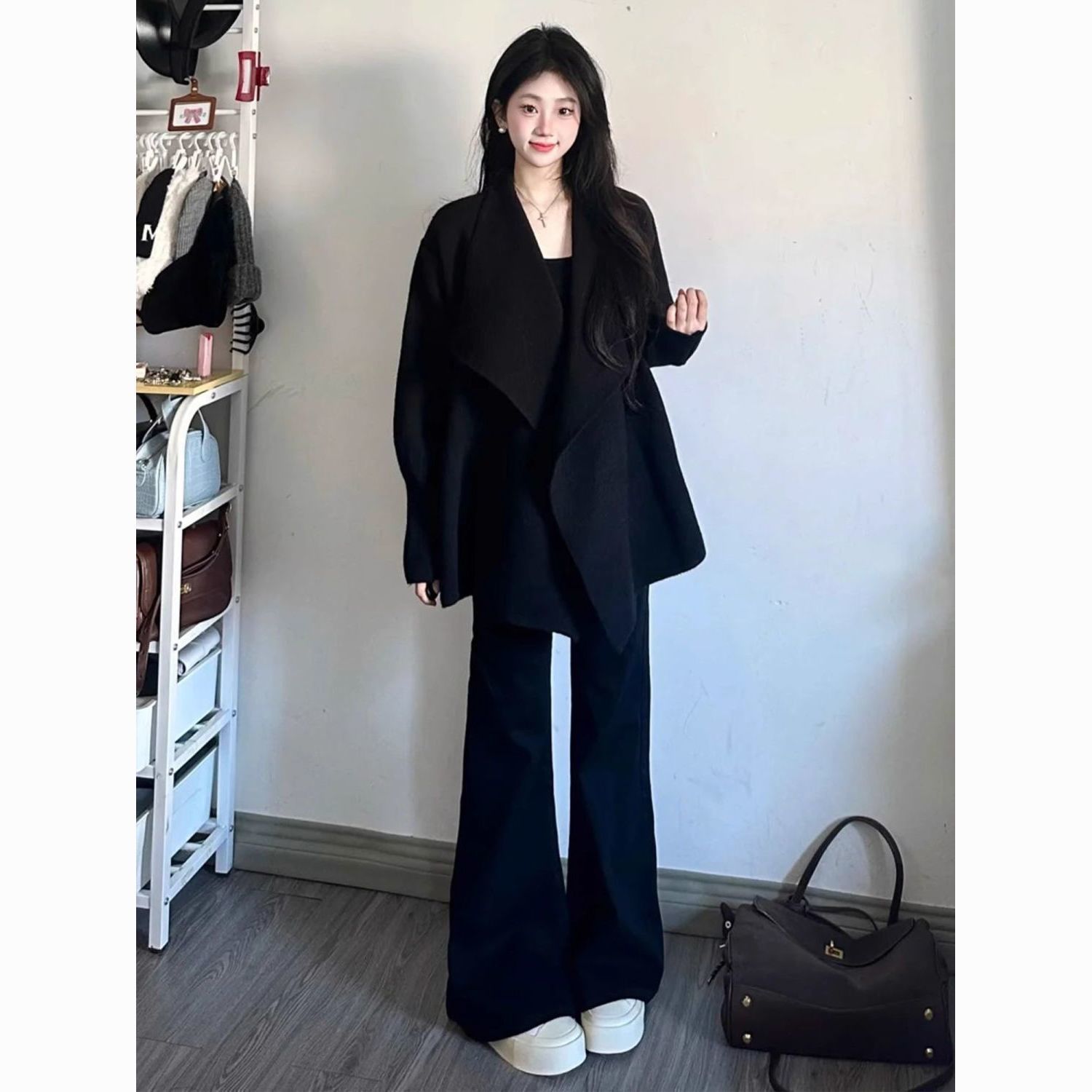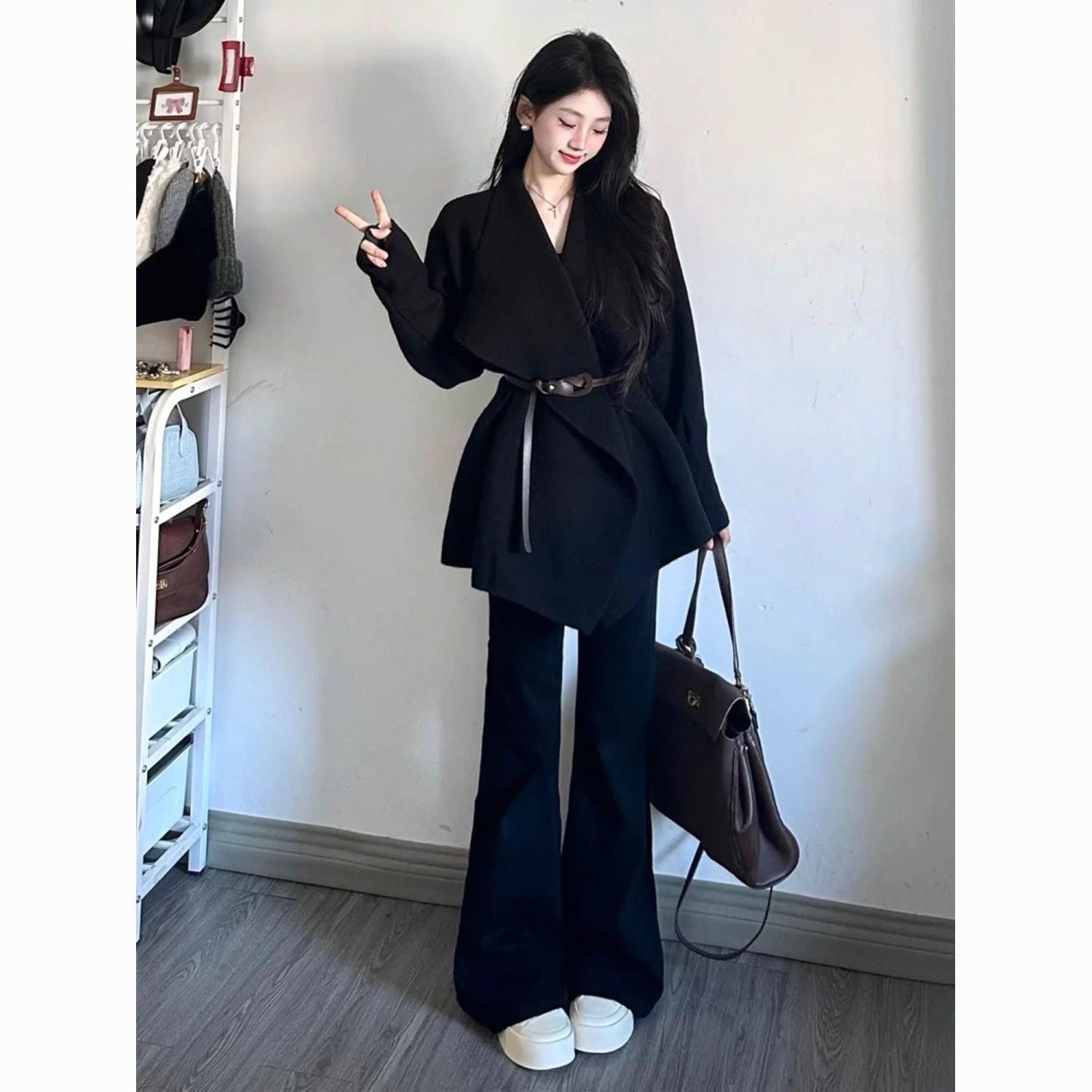 2025年秋冬新款黑色加绒高腰微喇女牛仔裤修身显瘦辣妹马蹄喇叭裤