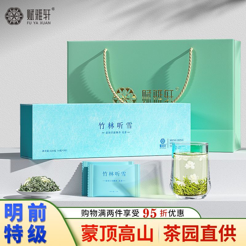 竹林听雪四川蒙顶甘露花茶飘雪特级高档礼盒装2025新茶送人送长辈