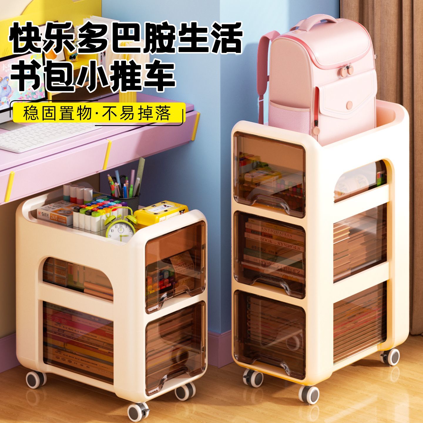 正妙书包置物架家用学生移动书架儿童储物架宿舍书桌旁收纳小推车