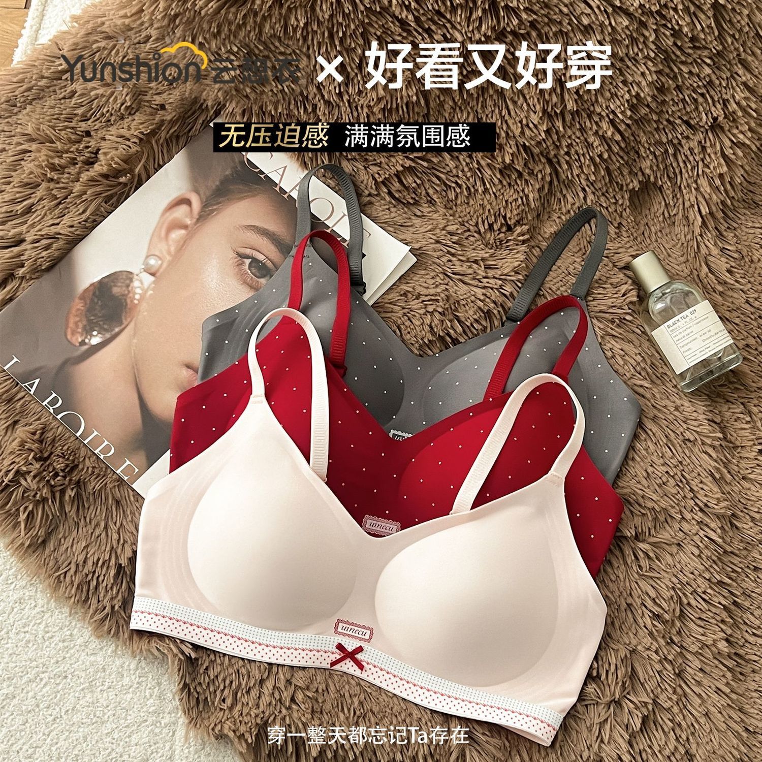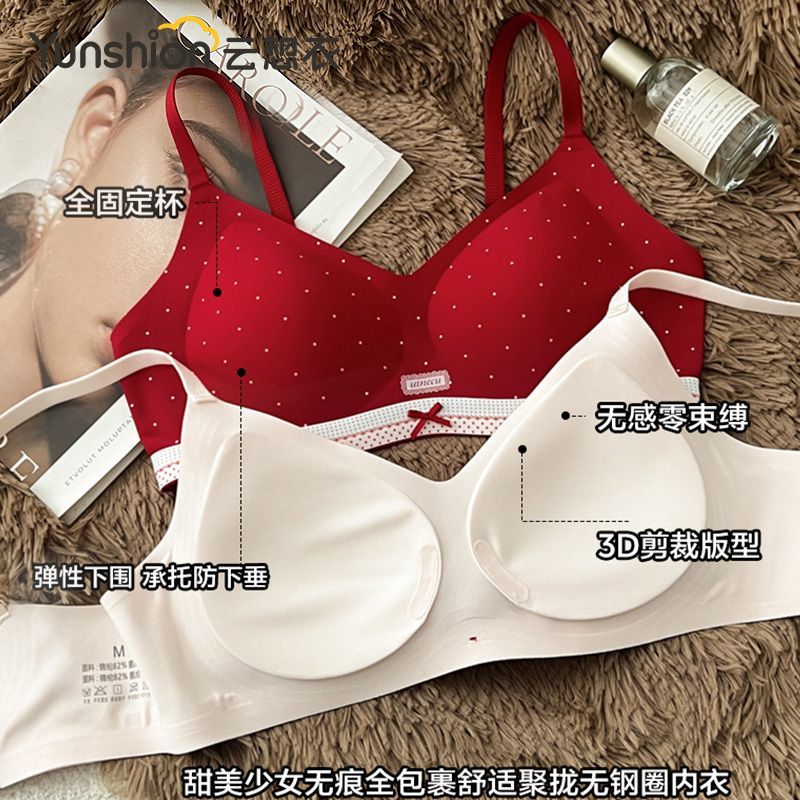 云想衣新款无痕内衣女经典撞色拼接高级感小胸聚拢甜美少女文胸罩