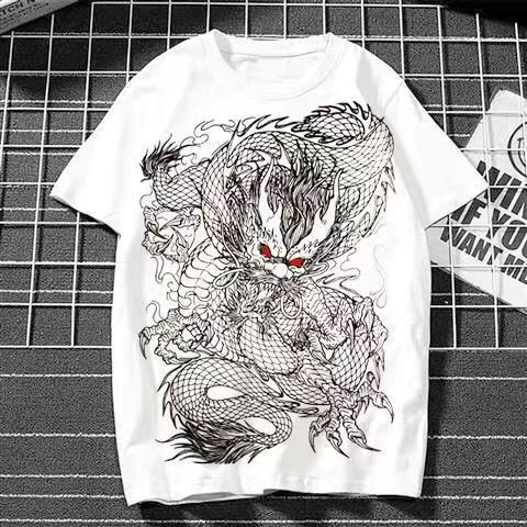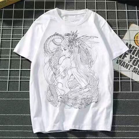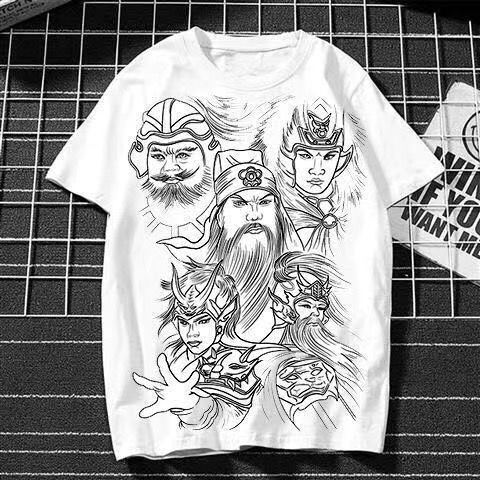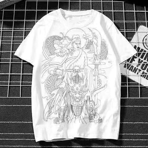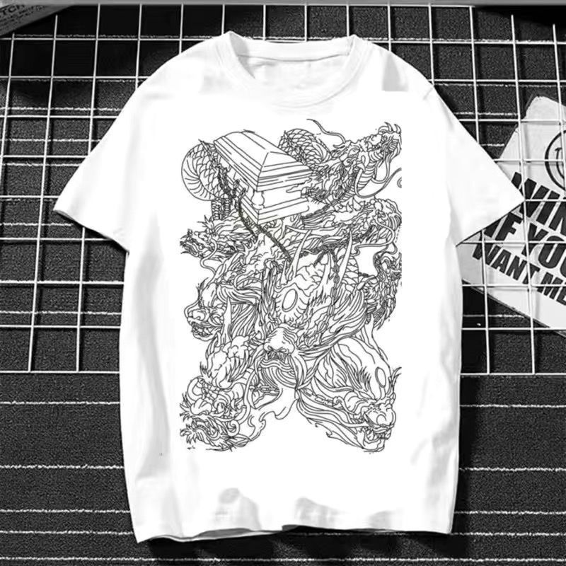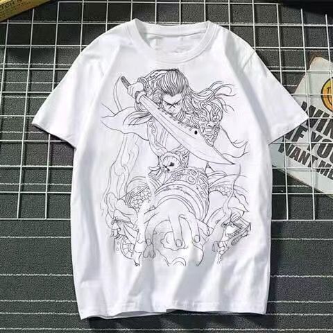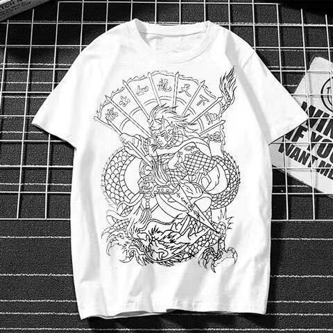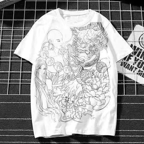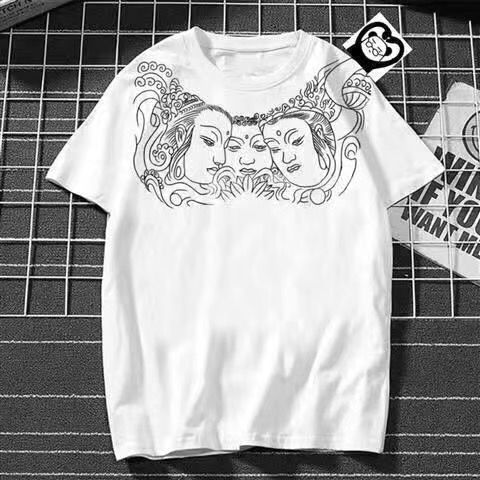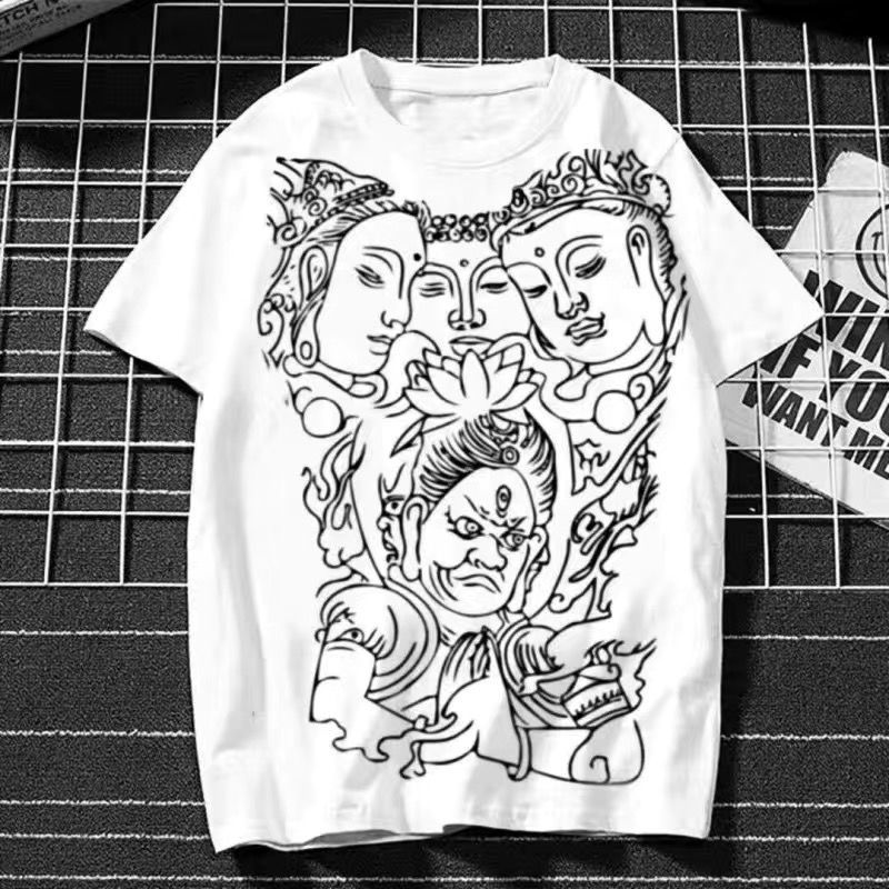 三面佛连体精神小伙衣服社会纹身图案学生夏季短袖T恤男潮流t半袖