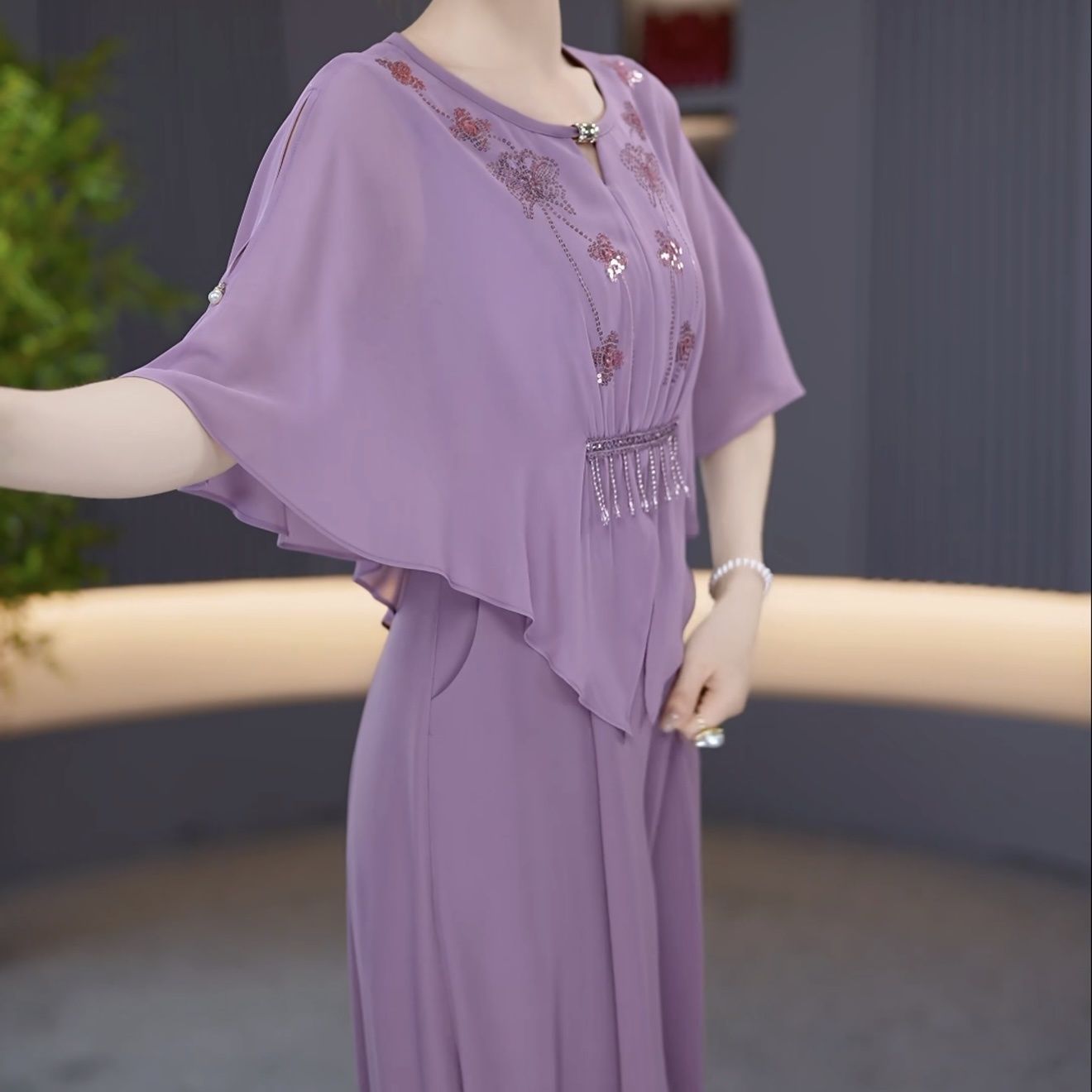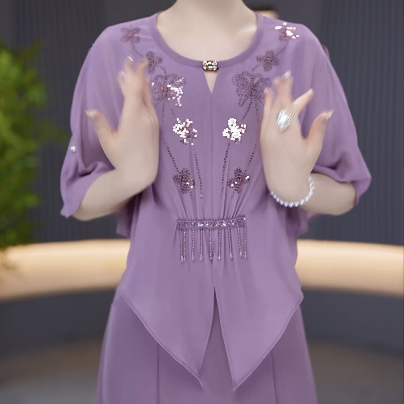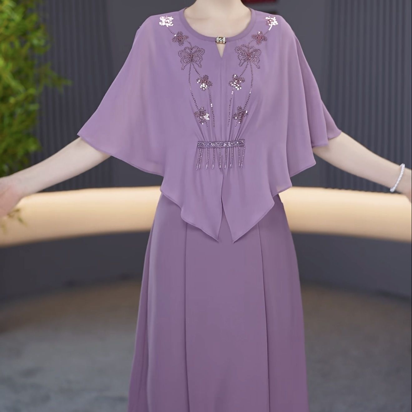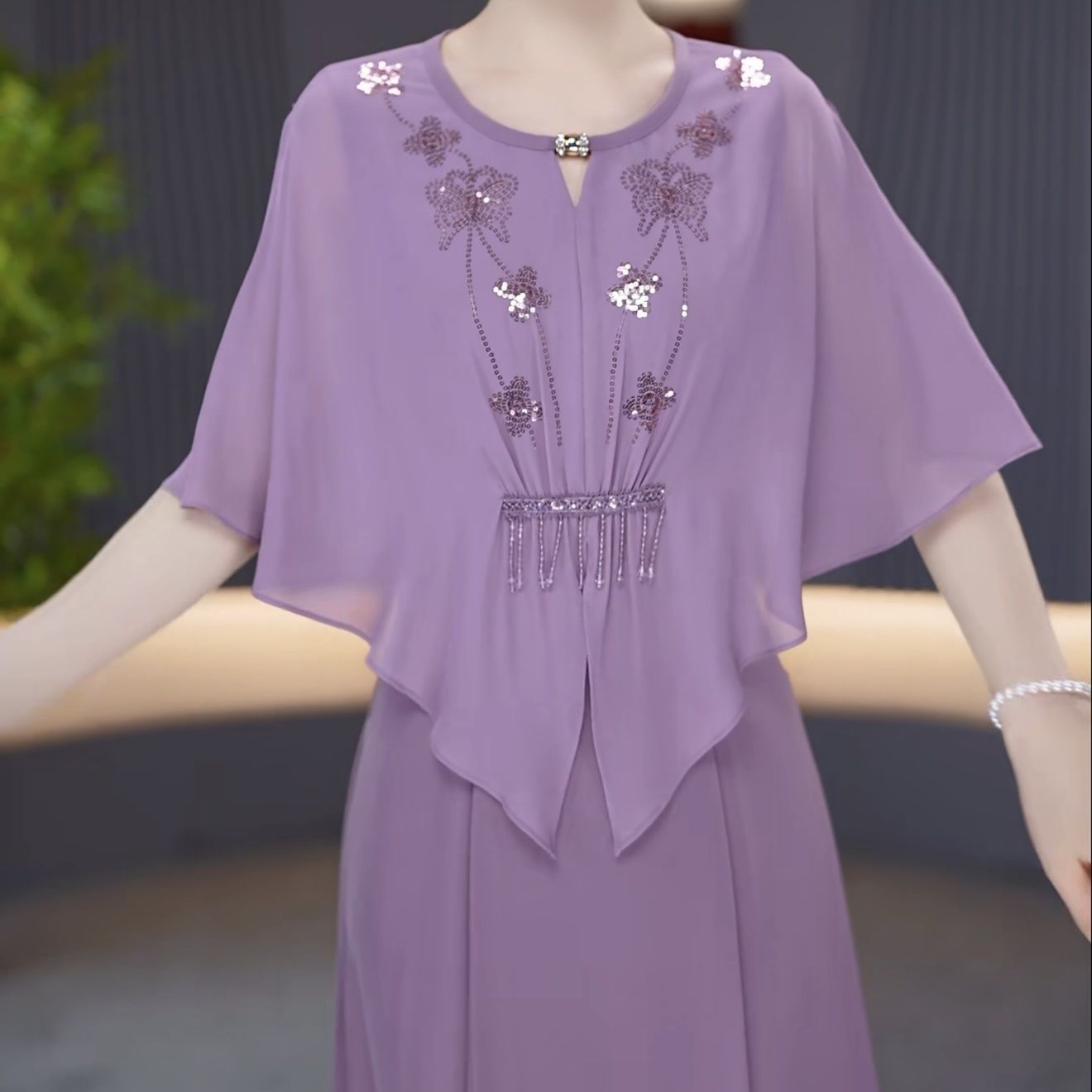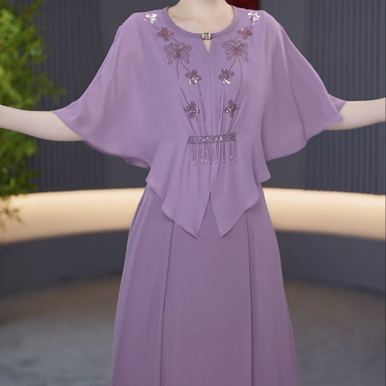 假两件设计感亮片气质优雅礼服裙2026夏季新款遮肉藏肉时尚减龄裙【15天内发货】